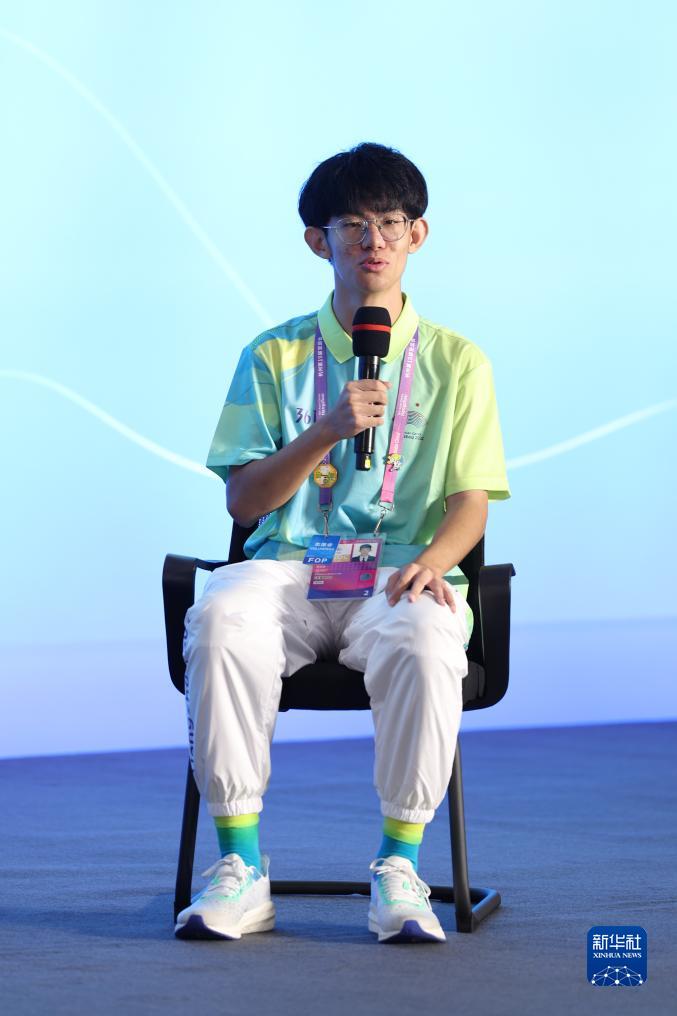 10月7日,杭州奧體中心籃球館競(jìng)賽志愿者李冠霖在見(jiàn)面會(huì)現(xiàn)場(chǎng)發(fā)言。