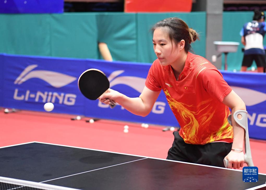 9月12日,中國殘疾人乒乓球隊運(yùn)動員黃文娟在訓(xùn)練中。新華社記者 朱旭東 攝