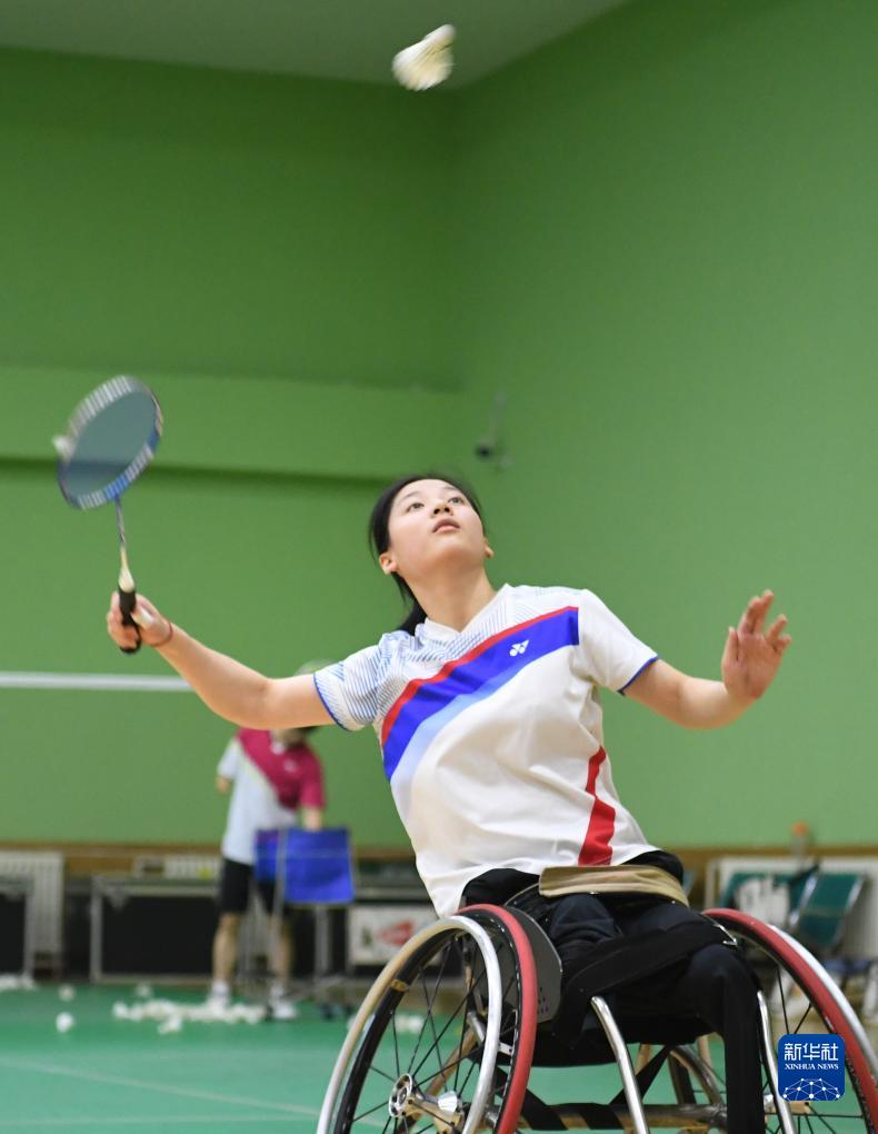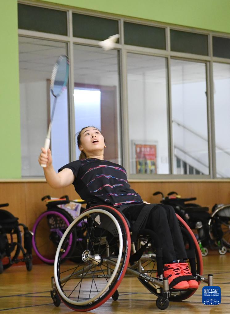 9月12日,中國殘疾人羽毛球隊運(yùn)動員屈子墨在訓(xùn)練中。新華社記者 朱旭東 攝