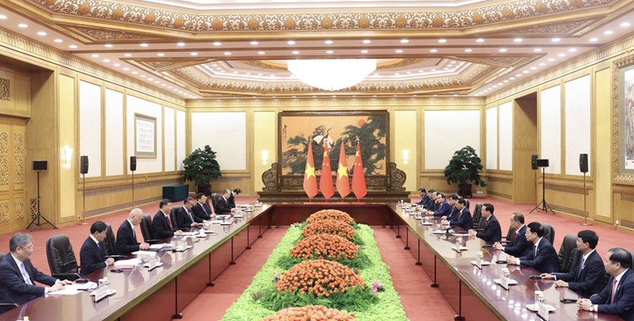 10月20日上午,國家主席習近平在北京人民大會堂會見來華出席第三屆“一帶一路”國際合作高峰論壇的越南國家主席武文賞。