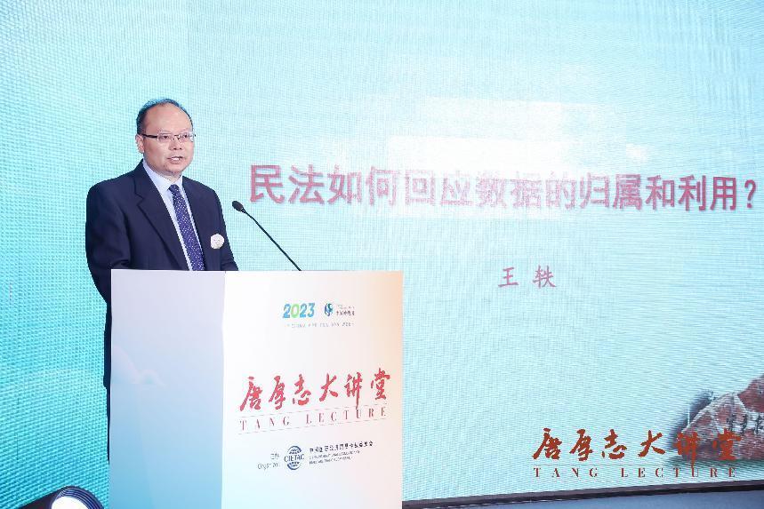 中國(guó)人民大學(xué)副校長(zhǎng)、貿(mào)仲仲裁員王軼以“民法如何回應(yīng)數(shù)據(jù)的歸屬和利用”為題開展主旨演講。他介紹了數(shù)據(jù)的含義和性質(zhì),援引民法典闡釋了民法上數(shù)據(jù)的內(nèi)涵與外延,剖析了數(shù)據(jù)承載的人身利益、財(cái)產(chǎn)利益和民法回應(yīng)的難題,重點(diǎn)分享了他在數(shù)據(jù)承載利益分配問題上的真知灼見。他表示,建構(gòu)數(shù)據(jù)基礎(chǔ)法律制度是法學(xué)界的使命,數(shù)據(jù)立法過程中要注意立法權(quán)、執(zhí)法權(quán)和司法權(quán)的配置。