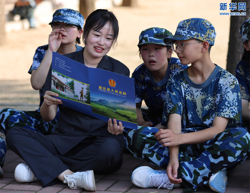 隆化縣人民法院城區(qū)人民法庭法官黃玲玲(左二)為學(xué)生講解法律知識。新華網(wǎng)發(fā)