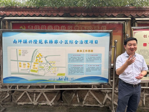 南坪鎮(zhèn)黨委副書記邵曉宇介紹興隆社區(qū)農(nóng)轉(zhuǎn)非小區(qū)綜合治理的情況。人民政協(xié)網(wǎng)記者王慧文 攝