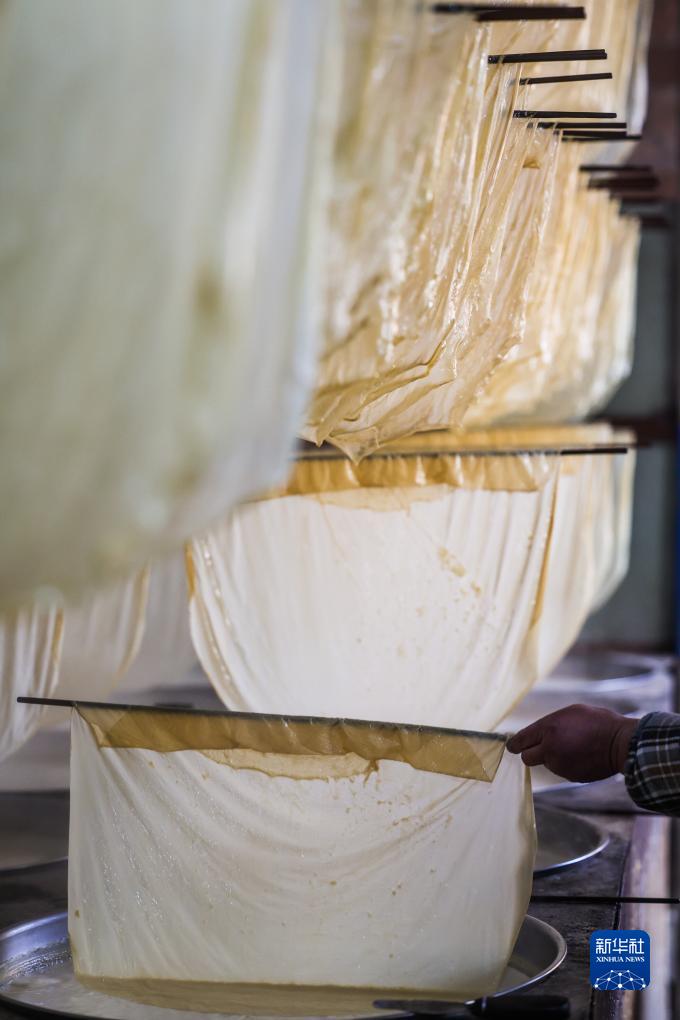 春節(jié)臨近,浙江省諸暨市安華鎮(zhèn)的傳統(tǒng)年貨——豆腐皮迎來銷售旺季。村民加緊制作豆腐皮,供應(yīng)節(jié)日市場。