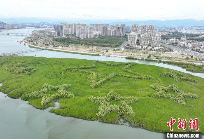 中新網(wǎng)廈門1月25日電(彭莉芳)退潮時(shí)分,在廈門市翔安區(qū)下潭尾紅樹林公園的灘涂上,一組由紅樹林勾勒的地標(biāo)景觀露出海面,郁郁蔥蔥,頗為壯觀。地標(biāo)景觀寓意“我愛中國(guó)”,紛至沓來的游客,在暮色中拍照“打卡”,偶爾驚起白鷺一片。