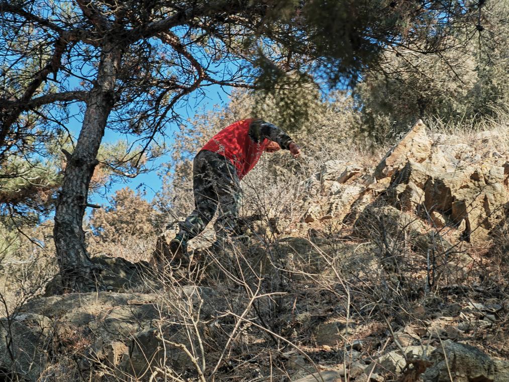 地形復(fù)雜,山路崎嶇,上山的路并不好走。涉深溝、穿荊棘,遇到一些陡坡時(shí),還得手腳并用攀爬。