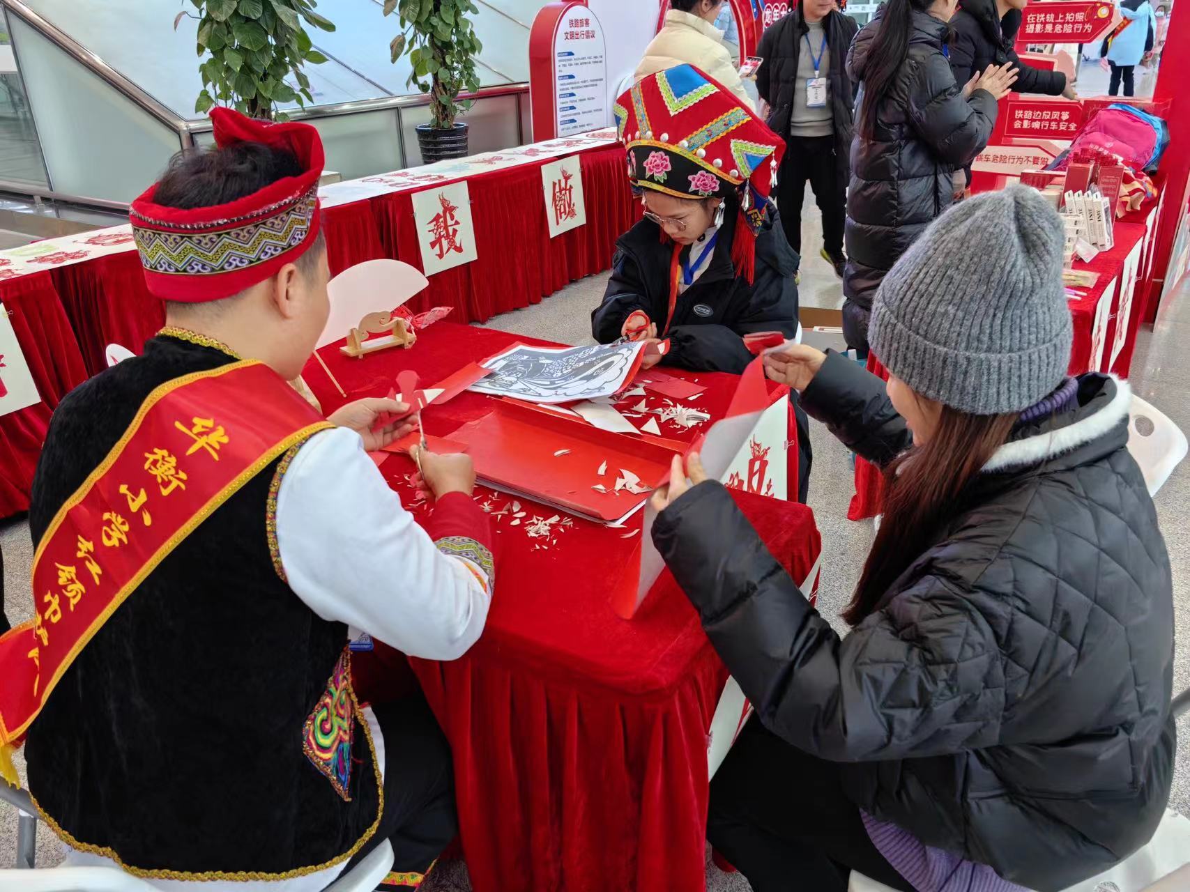 活動當天,平安廣西護路辦開展“知路愛路護路?共建平安鐵路”宣傳活動?;顒蝇F(xiàn)場,崇左市愛路護路天琴演奏團現(xiàn)場演奏樂曲《護路琴謠》;小學紅領巾護路隊通過表演愛路護路舞蹈《高鐵過瑤山,幸福小把爺》,贏得觀眾的掌聲。同時,小學紅領巾護路隊向旅客們展示非遺項目《交通強國,鐵路先行》主題剪紙,現(xiàn)場旅客駐足觀看并參與其中。