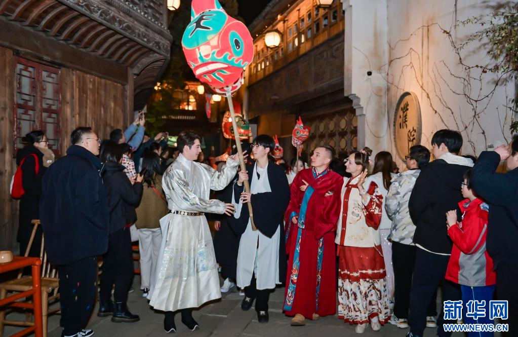 嬉魚燈會、街舞表演、萬物可敲、水上打鐵花……一系列兼具時尚與傳統(tǒng)的節(jié)目串聯(lián)起浙江省桐鄉(xiāng)市濮院時尚古鎮(zhèn)新年的起承轉(zhuǎn)合。2024年1月1日起,“時尚濮院·中國年”啟動,活動將持續(xù)至元宵節(jié)。