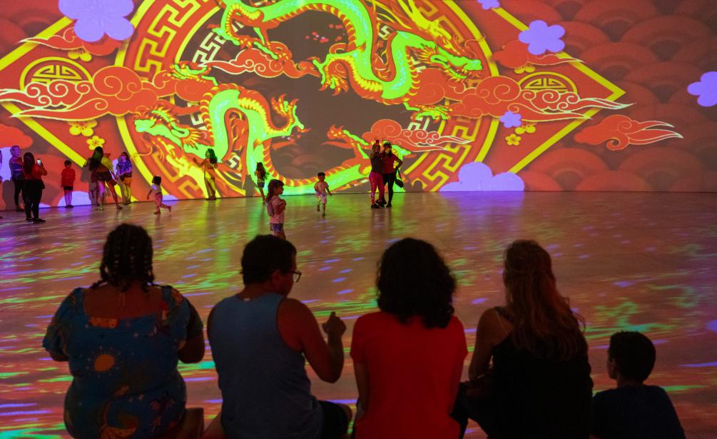 2月3日,在巴西累西腓,人們在中國春節(jié)慶?;顒由嫌^賞沉浸式體驗(yàn)展。新華社記者王天聰攝