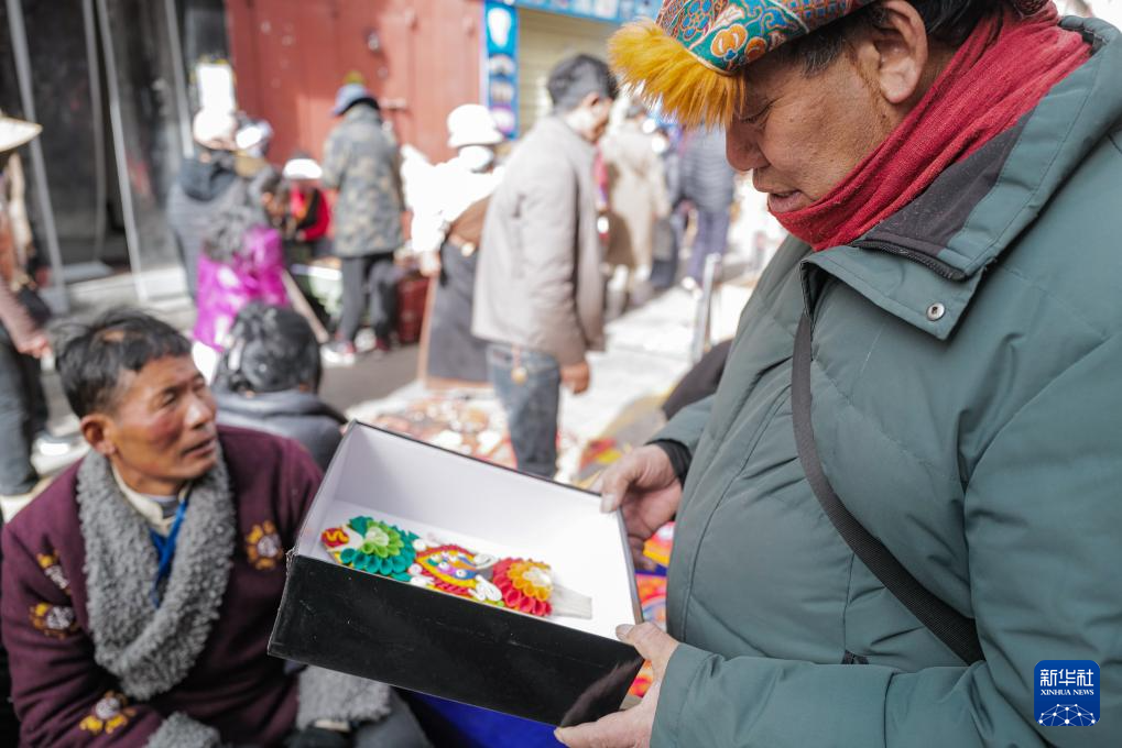 藏歷新年臨近,拉薩年貨市場上酥油花熱銷。酥油花以酥油為主要原料,手工精雕細捏而成,造型多樣,色彩豐富。