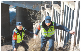 中午過(guò)后氣溫升高,地上的雪融化后,路上滿(mǎn)是泥濘,一段原本只需兩個(gè)小時(shí)的巡查區(qū)段,最后用了4個(gè)小時(shí)才走完。一路下來(lái),民警的身上、鞋子上和手上滿(mǎn)是泥土。
