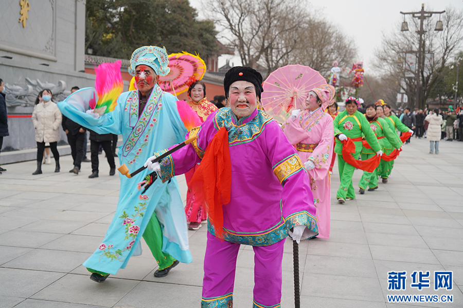 2月19日,在西安市臨潼區(qū)大唐華清城廣場,“扭秧歌”表演。王三合攝