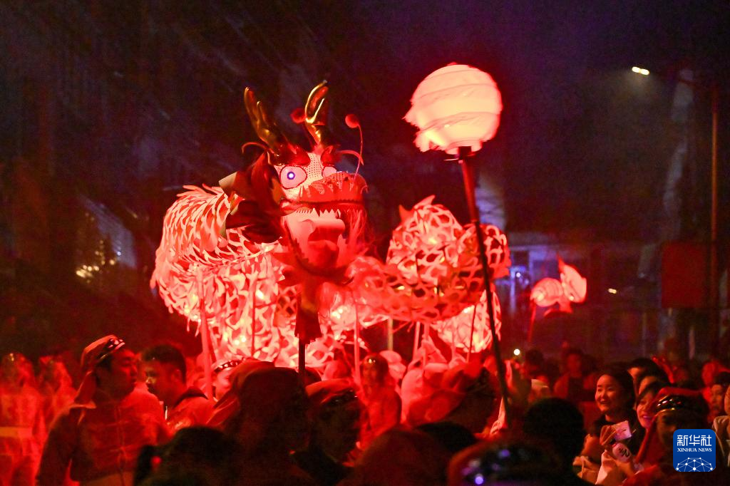 元宵佳節(jié)臨近,人們進(jìn)行傳統(tǒng)舞龍表演,熱熱鬧鬧迎元宵。