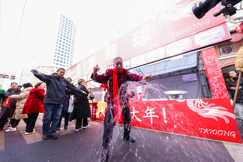 青島高家糖球非遺傳承人表演糖球絕活——拔絲糖球。市北區(qū)宣傳部供圖