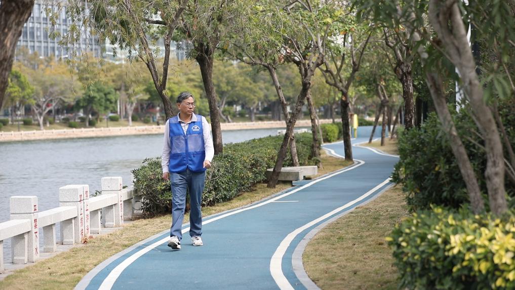 上午八點(diǎn)半,陳亞進(jìn)走出家門,乘公交車前往白鷺洲公園東公園巡湖。從東公園走到西公園,抵達(dá)位于西公園的筼筜湖保護(hù)中心,是他每次巡湖的基本路線。“有時(shí)起得早我就早點(diǎn)來,有時(shí)候白天忙就晚上再來。西公園晚上很熱鬧,散步、健身、唱歌、跳舞樣樣都有?!标悂嗊M(jìn)說。