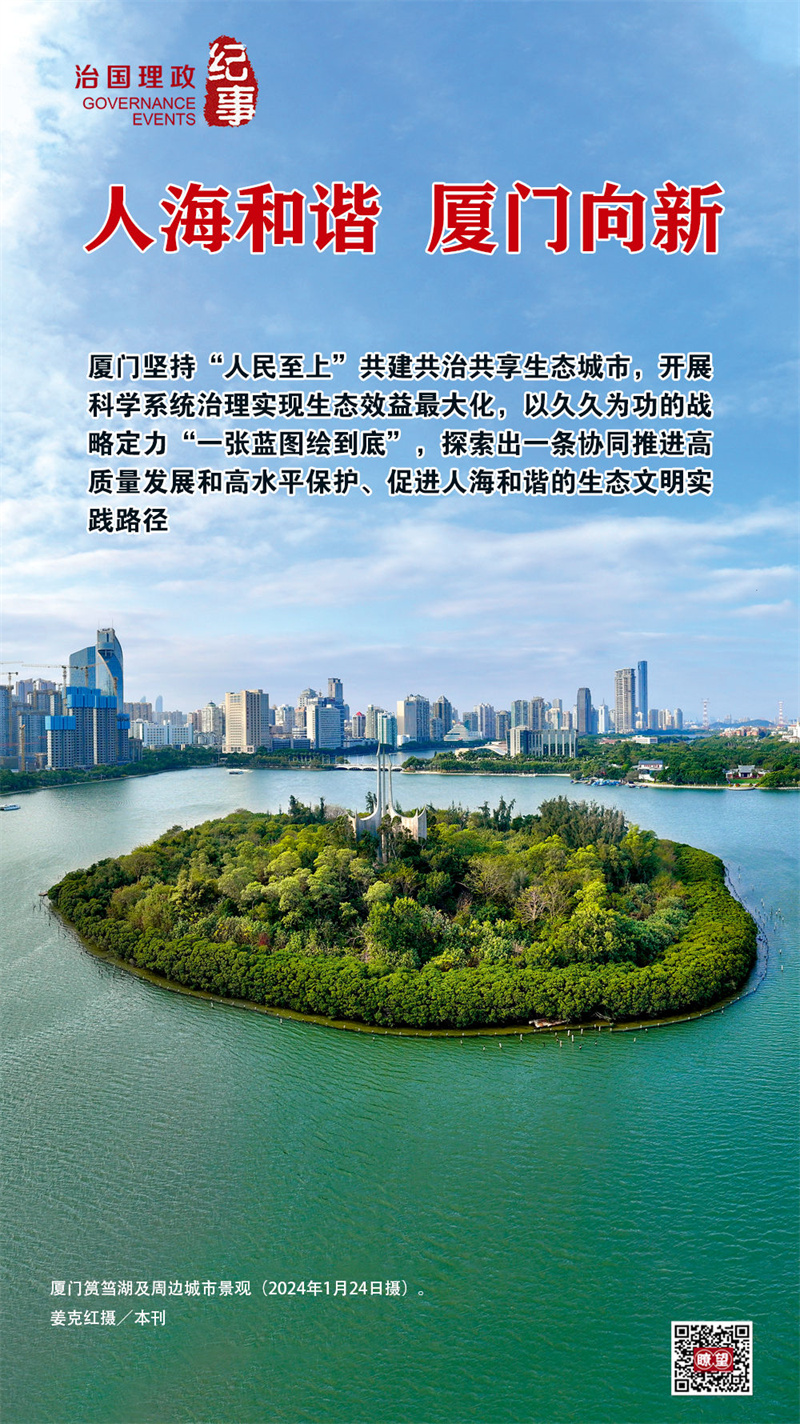 從習(xí)近平同志親自謀劃、親自部署、親自推動的筼筜湖綜合治理出發(fā),廈門堅持“人民至上”共建共治共享生態(tài)城市,開展科學(xué)系統(tǒng)治理實現(xiàn)生態(tài)效益最大化,以久久為功的戰(zhàn)略定力“一張藍(lán)圖繪到底”,探索出一條協(xié)同推進高質(zhì)量發(fā)展和高水平保護、促進人海和諧的生態(tài)文明實踐路徑。