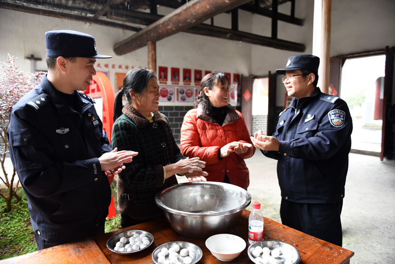 元宵節(jié)前夕,江西省分宜縣公安局組織社區(qū)民警走進(jìn)轄區(qū)開展“警民慶元宵 情暖夕陽紅”主題關(guān)愛活動。民警和老人們一起動手包湯圓、聊家常,暢談元宵習(xí)俗趣事,宣傳防火、防盜、防詐騙等安全防范常識,讓群眾感受到濃濃的團(tuán)圓之情。圖為民警與轄區(qū)老人一起包湯圓話安全,共迎元宵佳節(jié)。