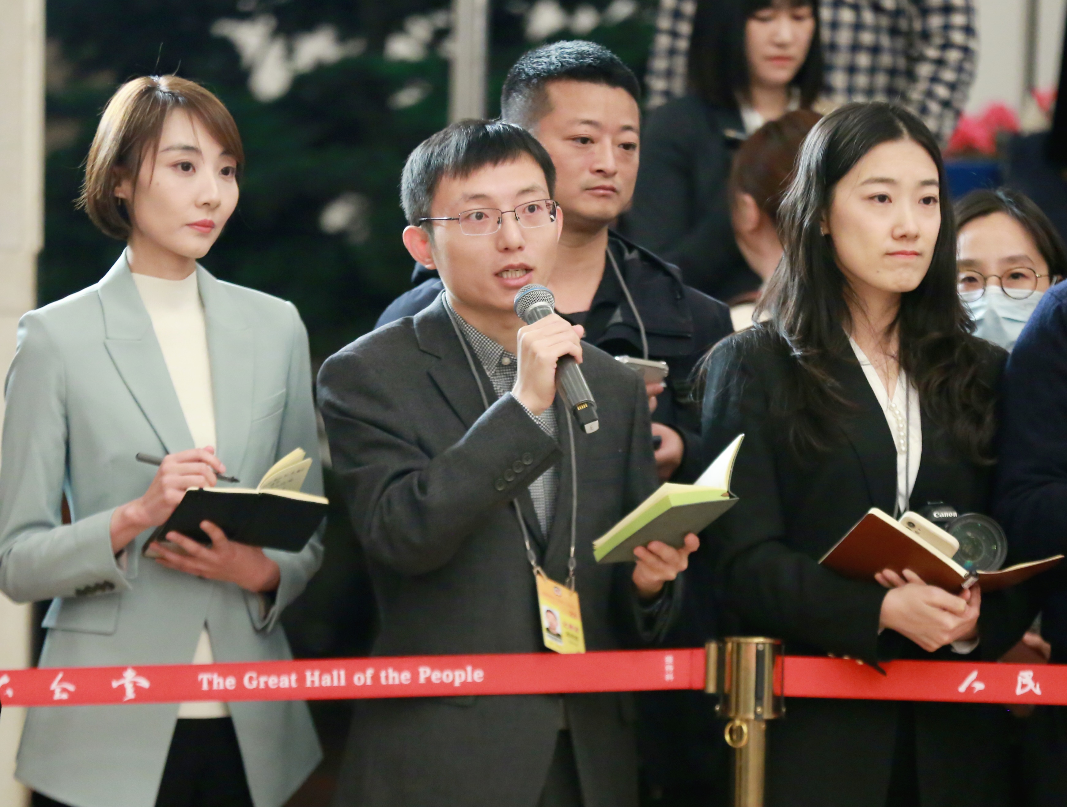 全國政協(xié)十四屆二次會議3月4日舉行首場“委員通道”采訪活動。圖為本報記者提問。 本報記者 徐偉倫 攝