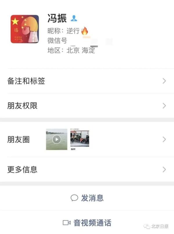 馮振的微信昵稱叫“逆行”