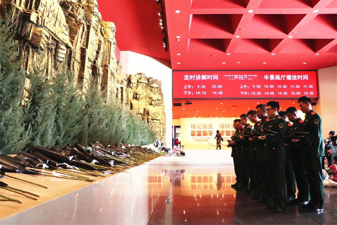 在抗日戰(zhàn)爭紀(jì)念館紀(jì)念哀思抗日先烈。劉文龍 攝