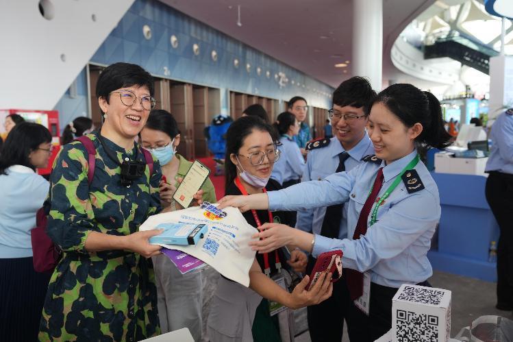 在海南從事旅游行業(yè)的盧庚英來到服務(wù)中心咨詢稅收優(yōu)惠政策時,看到稅務(wù)干部穿梭在展區(qū)忙著“發(fā)福利”,便試著參與。答題有獎、打卡有獎……簡單操作后,盧庚英順利領(lǐng)取到了??谑卸悇?wù)局精心準(zhǔn)備的“稅務(wù)小熊”公仔以及稅務(wù)文創(chuàng)禮盒?;悠陂g,稅務(wù)干部還貼心地為她講解了稅收優(yōu)惠政策的享受條件和申請指南。“滿載而歸!”她笑著說道。