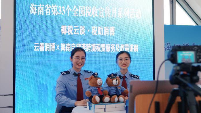 海南省稅務(wù)局舉辦“椰稅云談·稅助消博”政策解讀直播活動,稅務(wù)干部通過“海南稅務(wù)”抖音直播間在線講解海南自貿(mào)港跨境稅費(fèi)服務(wù)及政策。海南省稅務(wù)局供圖
