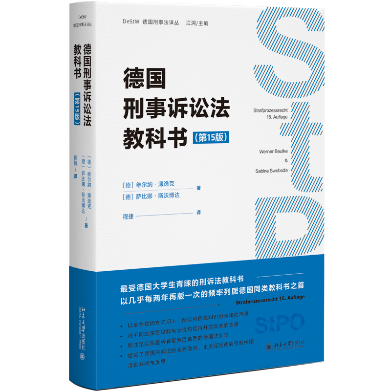 本書簡介:維爾納·薄逸克教授所著的《德國刑事訴訟法教科書》是德國影響力最大的教科書。本書涵蓋刑事訴訟法的總論和分論部分,其中總論部分包括基本原理、基本原則以及管轄、訴訟主體、回避、刑事追訴專門機(jī)關(guān)職權(quán)、被告人基本權(quán)利、辯護(hù)、證據(jù)法制度和原理、證據(jù)排除法則、強(qiáng)制措施尤其是羈押、訴訟要件和訴訟行為等全面的基本制度和理論范疇。在總論部分涉及到了許多中國刑事訴訟法尚屬研究空白,甚至完全未知的領(lǐng)域,例如刑事訴訟行為理論,訴訟客體理論、自主性證據(jù)禁止理論等。其研究方法更是從德國盛行的法教義學(xué)研究方法入手,即每一個(gè)理論議題都不脫離法條的解釋技術(shù)。本書特點(diǎn)在于并不停留于法條或制度介紹,而是深入規(guī)范之中,完整解釋了德國刑事訴訟法的設(shè)計(jì)邏輯和適用技術(shù),對我國審判方式改革具有重要參考價(jià)值。