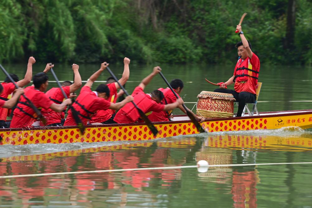 5月29日,在酉陽(yáng)縣龍?zhí)舵?zhèn),龍舟隊(duì)在水面角逐。