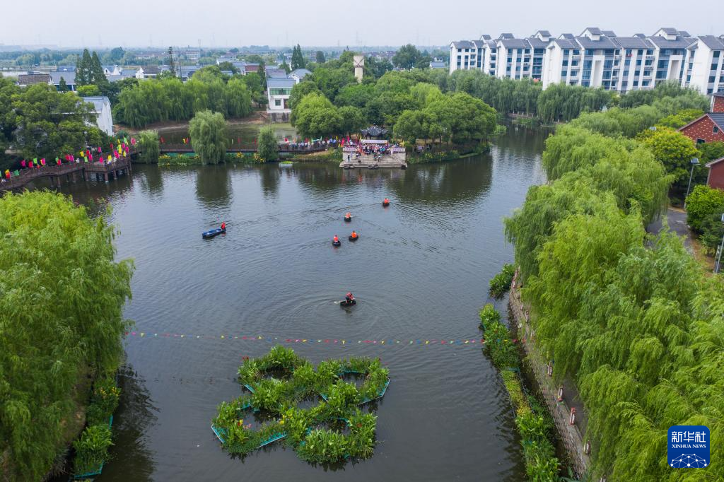 當(dāng)日,浙江省湖州市吳興區(qū)東林鎮(zhèn)舉辦“慶端午 劃菱桶”水鄉(xiāng)端午趣味民俗活動(dòng),來(lái)自東林鎮(zhèn)各村的村民們?cè)谌娲鍏⒓恿怂l(xiāng)劃菱桶比賽、荷塘釣小龍蝦、做艾草花束、包粽子等端午趣味民俗活動(dòng),在初夏時(shí)節(jié)呈現(xiàn)江南水鄉(xiāng)特有的迎端午氣氛。