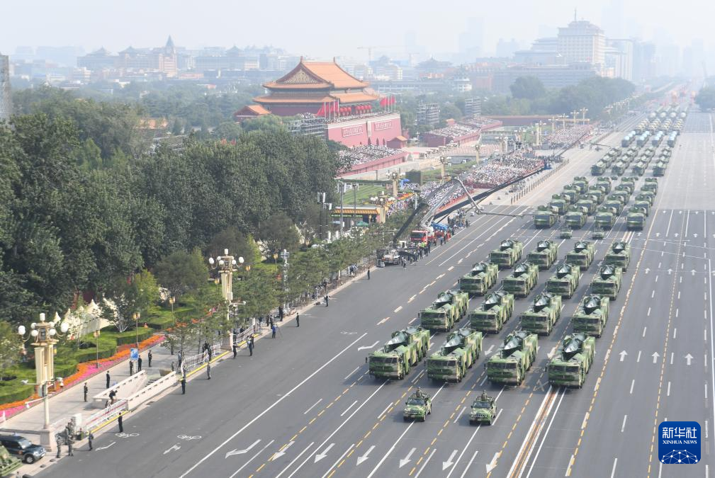 2019年10月1日上午,慶祝中華人民共和國(guó)成立70周年大會(huì)在北京天安門廣場(chǎng)隆重舉行。這是裝備方隊(duì)通過天安門廣場(chǎng)。新華社記者 普布扎西 攝