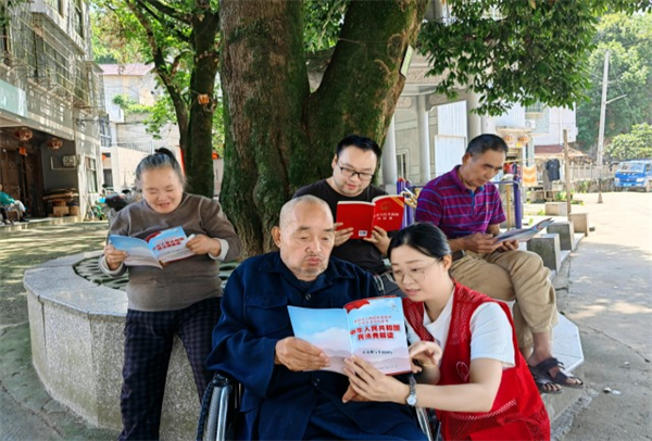 “香溢”志愿者與居家老人共學(xué)文件精神
