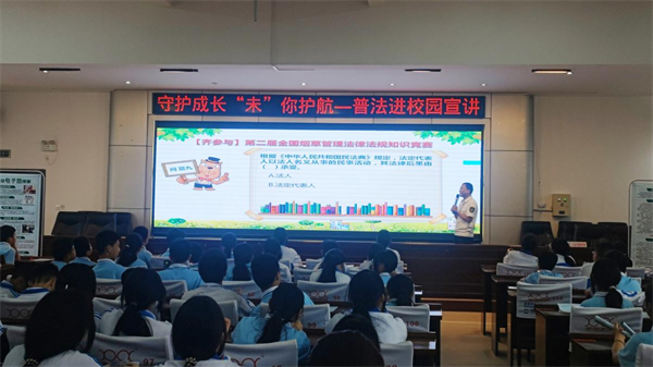 深入校園,護未行動。瑞昌市煙草專賣局深入轄區(qū)多所中學,以“守護成長、為你護航”為主題,開展普法進校園宣講活動。在活動現(xiàn)場,利用PPT大屏幕投屏形式引導廣大師生參與競賽答題活動,采取以案釋法、漫畫說法等形式生動宣講《中華人民共和國煙草專賣法》《中華人民共和國未成年人保護法》和《電子煙管理辦法》,為進一步守護未成年人身心健康,營造綠色健康校園環(huán)境奠定堅實基礎。