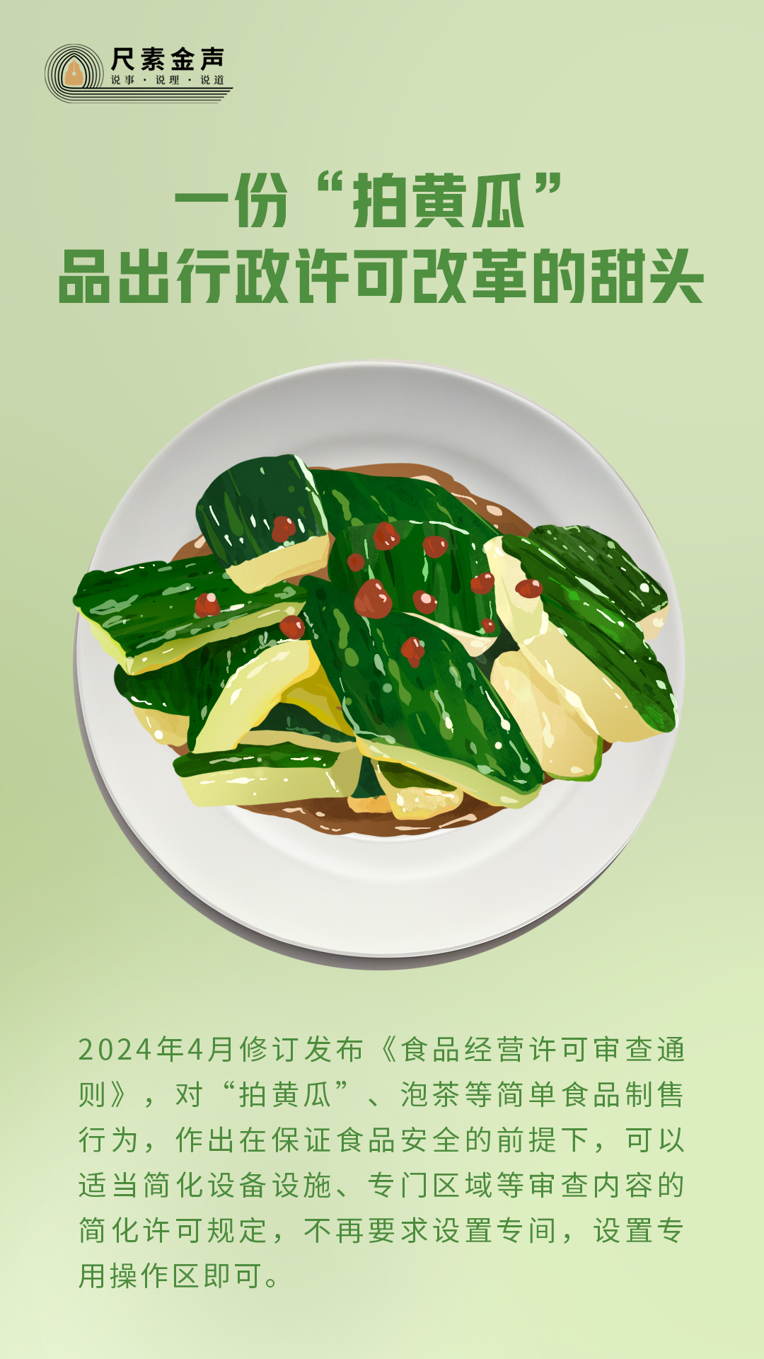 結合餐飲業(yè)實際,考慮中小經(jīng)營主體和消費者的訴求,科學評估食品安全風險,去年6月,市場監(jiān)管總局修訂發(fā)布《食品經(jīng)營許可和備案管理辦法》,今年4月修訂發(fā)布《食品經(jīng)營許可審查通則》,對“拍黃瓜”、泡茶等簡單食品制售行為,作出在保證食品安全的前提下,可以適當簡化設備設施、專門區(qū)域等審查內(nèi)容的簡化許可規(guī)定,不再要求設置專間,設置專用操作區(qū)即可。各地市場監(jiān)管部門立足當?shù)貙嶋H優(yōu)化“拍黃瓜”經(jīng)營許可條件,相繼出臺相關食品經(jīng)營許可和備案管理實施細則。比如,修訂的《上海市食品經(jīng)營許可和備案管理實施辦法》已于5月10日正式實施,明確加工制作植物性冷食類食品(不含非發(fā)酵豆制品),可申請簡單制售經(jīng)營項目,在保證食品安全的前提下,可僅設置專區(qū)。
