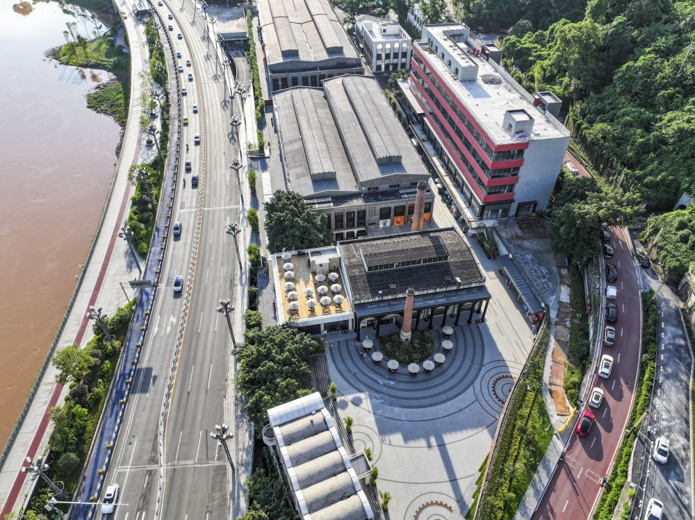 ↑這是7月15日拍攝的重慶市江北區(qū)北倉(cāng)文創(chuàng)街區(qū)一帶景象(無(wú)人機(jī)照片)。