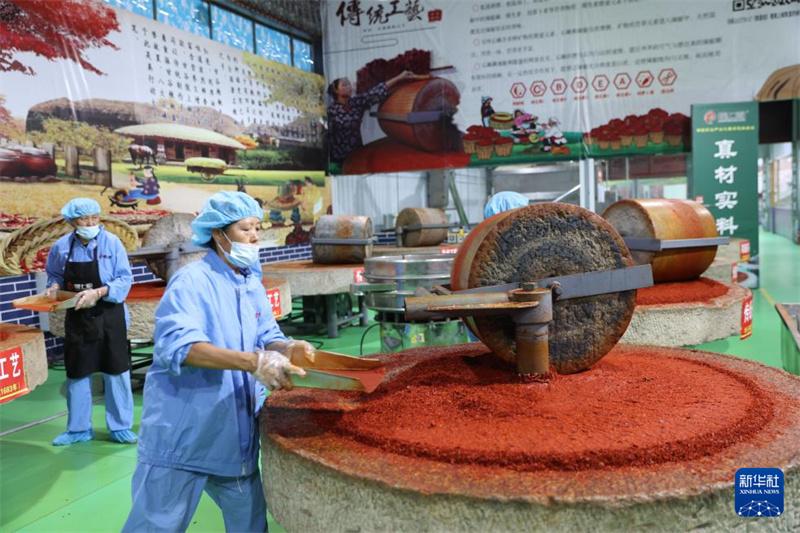 在甘谷縣安遠(yuǎn)鎮(zhèn)大城村,辣椒烘干和加工車間里,電力帶動(dòng)的石碾、石臼,正在模仿傳統(tǒng)工藝,一圈一圈地磨、一上一下地杵。公司負(fù)責(zé)人說,創(chuàng)新的這條生產(chǎn)線是按傳統(tǒng)手工工藝生產(chǎn),能更好地保留辣椒的香味。