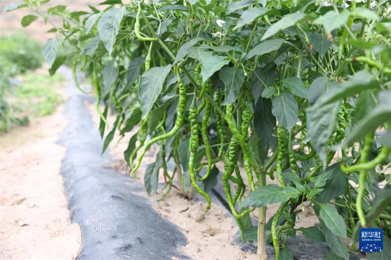 這是7月22日在甘肅天水市甘谷縣新興鎮(zhèn)侯家溝村的辣椒生產(chǎn)基地拍攝的辣椒?!⌒氯A社記者 呂帥 攝