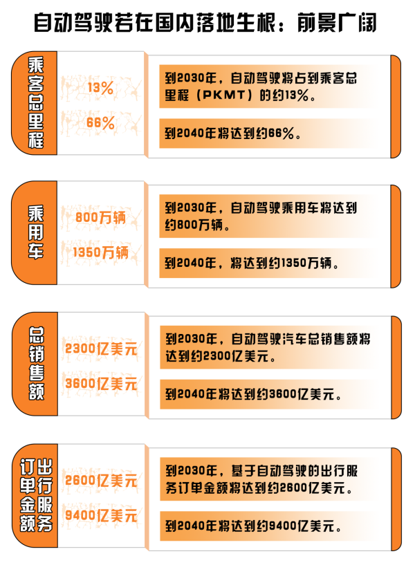 “冰凍三尺非一日之寒,水滴石穿非一日之功”。無人駕駛作為自動駕駛的高級階段,其能夠在國內(nèi)爆火“出圈”絕非偶然。咨詢公司麥肯錫預(yù)計(jì),我國未來很可能成為全球最大的自動駕駛市場,至2030年,自動駕駛相關(guān)的新車銷售及出行服務(wù)創(chuàng)收將超過5000億美元,自動駕駛市場優(yōu)化擴(kuò)張,為無人駕駛在國內(nèi)發(fā)展打下堅(jiān)實(shí)基礎(chǔ)。
