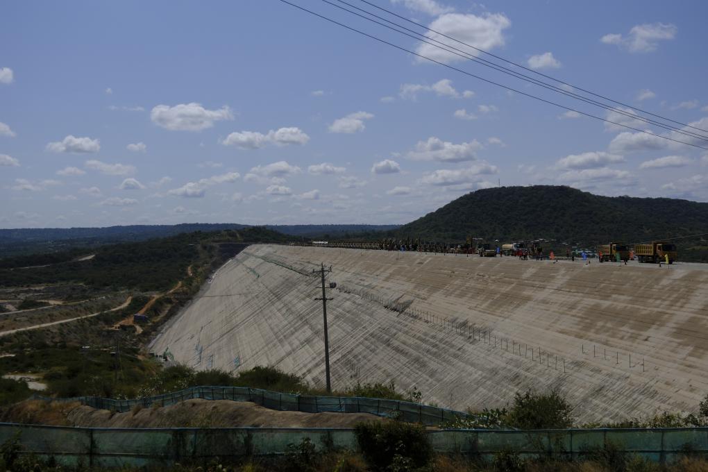 這是6月18日在肯尼亞南部馬庫埃尼拍攝的由中企承建的斯瓦克大壩。(新華社記者林晶攝)