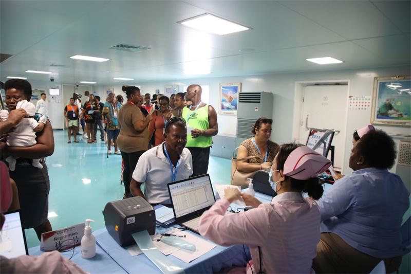 2024年8月12日,中國海軍“和平方舟”號醫(yī)院船在莫桑比克馬普托開展醫(yī)療服務。