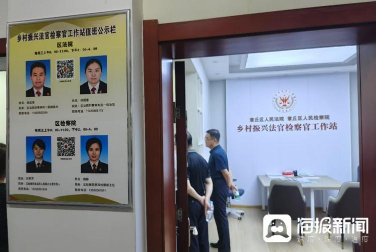 葉貴芬?guī)ьI(lǐng)采訪團(tuán)參觀了村里的鄉(xiāng)村振興法官檢察官工作站,按照工作站值班公示,法官、檢察官各有兩名,分時(shí)段在村中駐站工作,為村民提供法律幫助。