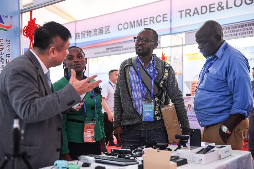 5月9日,參展商在肯尼亞首都內(nèi)羅畢舉辦的中非經(jīng)貿(mào)博覽會走進(jìn)非洲巡展上與來賓交談。新華社記者李亞輝 攝