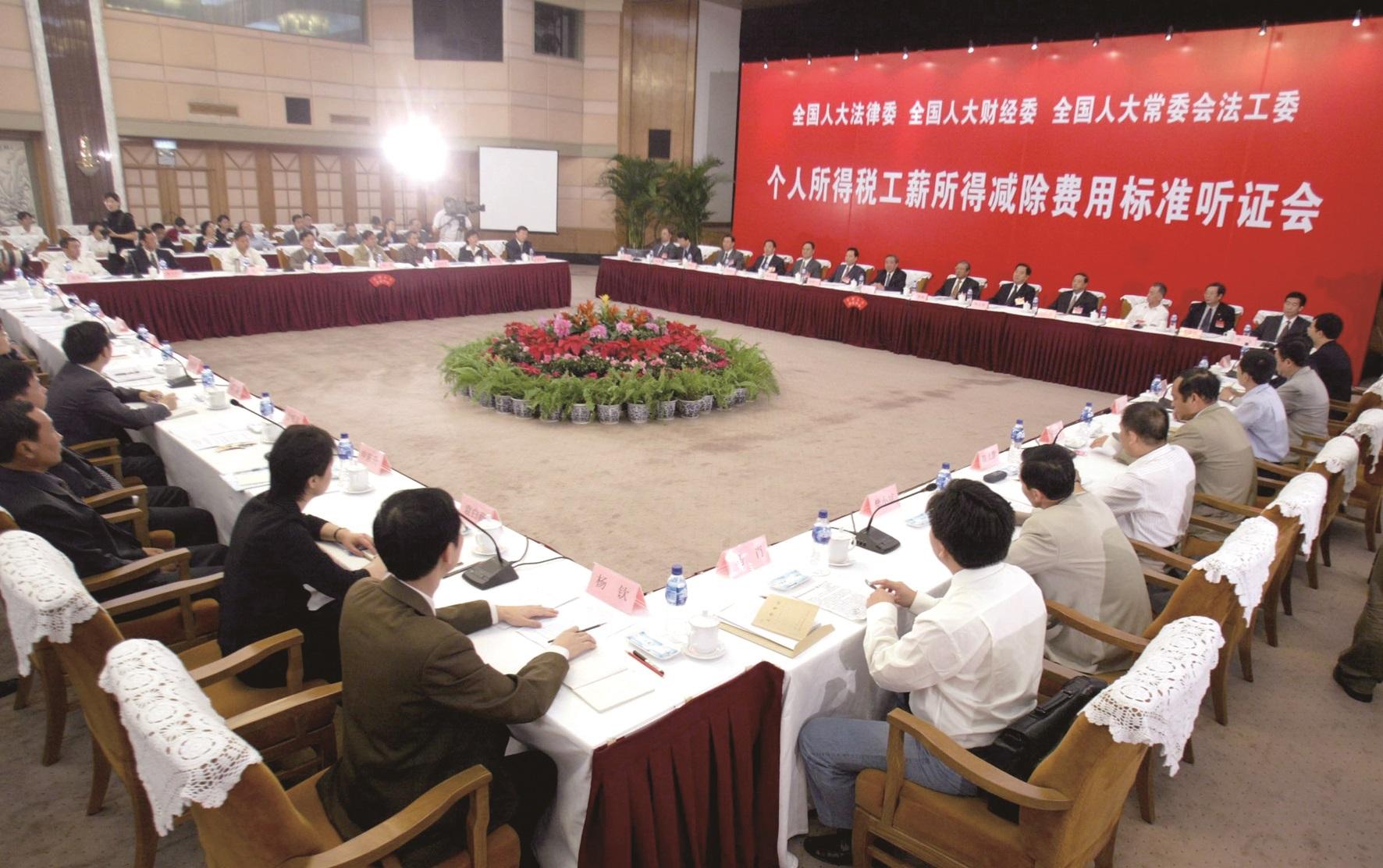 2005年9月27日,全國(guó)人大及其常委會(huì)歷史上第一次立法聽證會(huì)在北京舉行。 新華社發(fā)