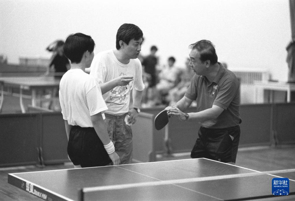 這是張燮林(右)在第35屆世界乒乓球錦標賽女子雙打比賽中指導(dǎo)葛新愛、閻桂麗(資料照片)。新華社記者 胡偉 攝