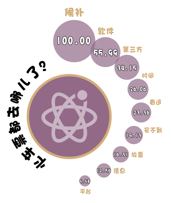 (制作:法治網(wǎng)輿情中心 數(shù)據(jù)來源:收集嗶哩嗶哩《科技黃牛大戰(zhàn)12306,火車票都去哪了?》視頻下3163條一級評論,對選取的信息進行數(shù)據(jù)清洗及自然語言處理,將熱度最高的詞語規(guī)定為100)
