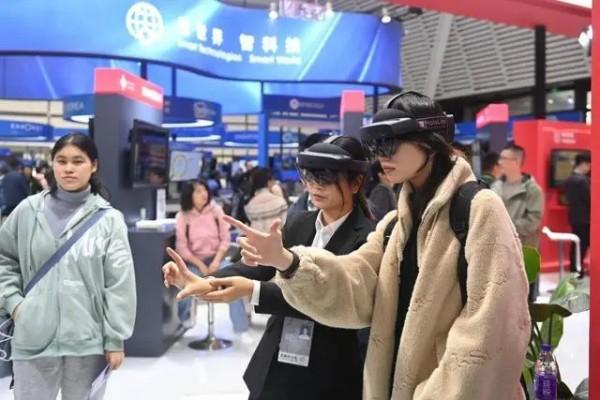 2024年世界互聯(lián)網(wǎng)大會“互聯(lián)網(wǎng)之光”博覽會上,觀眾在工作人員的指導(dǎo)下體驗操作一款全息智能醫(yī)學(xué)影像系統(tǒng)。