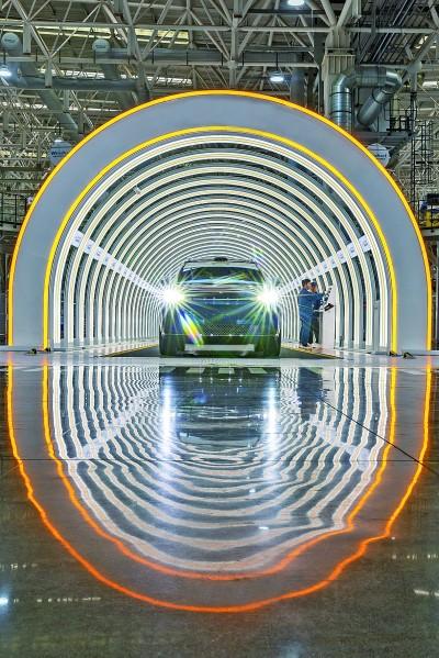 重慶市兩江新區(qū)一家汽車(chē)工廠(chǎng)內(nèi),工作人員在調(diào)試即將下線(xiàn)的整車(chē)。新華社發(fā)