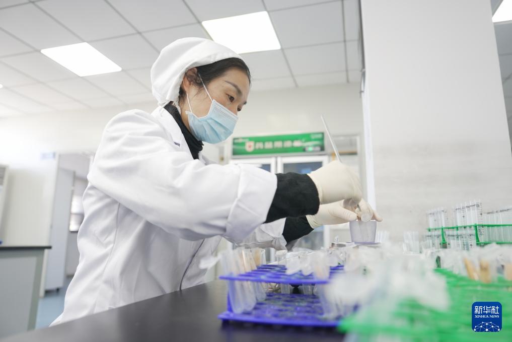 11月29日,在石門縣一家家禽加工企業(yè)實驗室,工作人員對雞肉樣本進行抽檢。