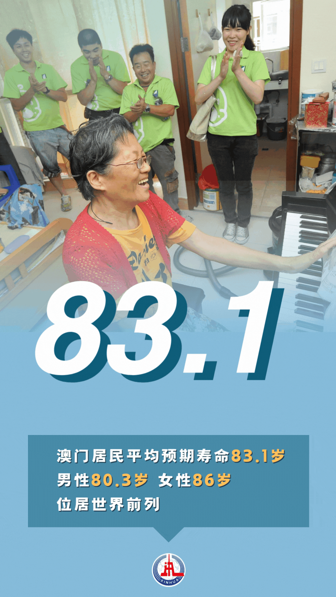 回歸祖國以來,澳門建立了涵蓋生命全周期、覆蓋生活各領(lǐng)域的民生保障體系,醫(yī)療保障水平顯著提升。澳門初級衛(wèi)生保健體系被世界衛(wèi)生組織評為“太平洋地區(qū)典范”。澳門居民平均預(yù)期壽命83.1歲,其中男性80.3歲、女性86歲,位居世界前列。