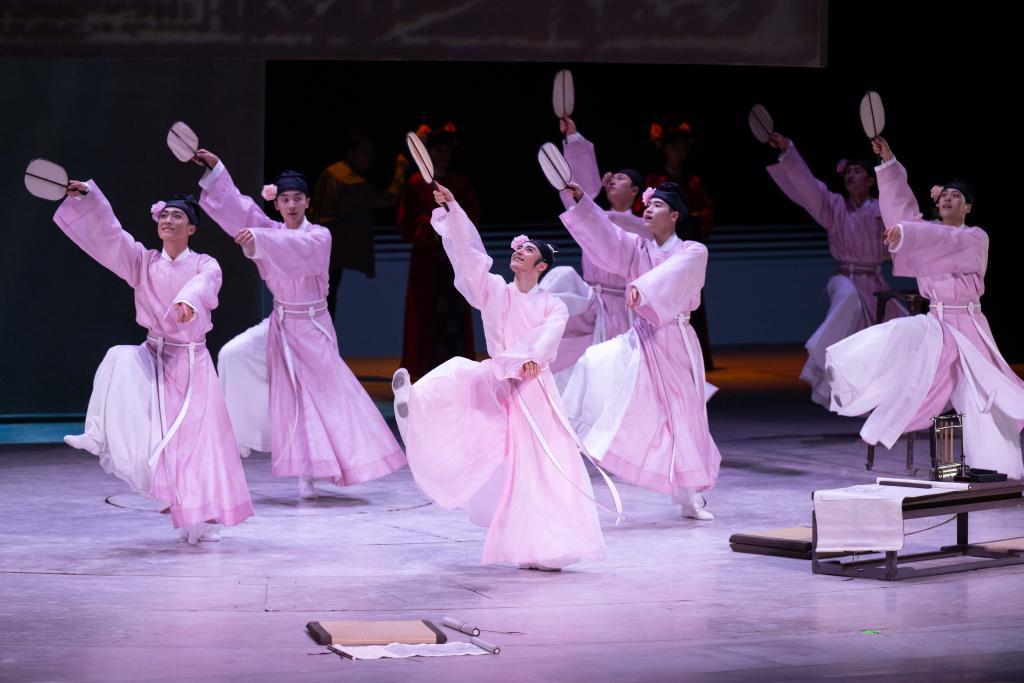 7月18日,演員在舞蹈詩劇《只此青綠》中表演。新華社記者 張金加 攝