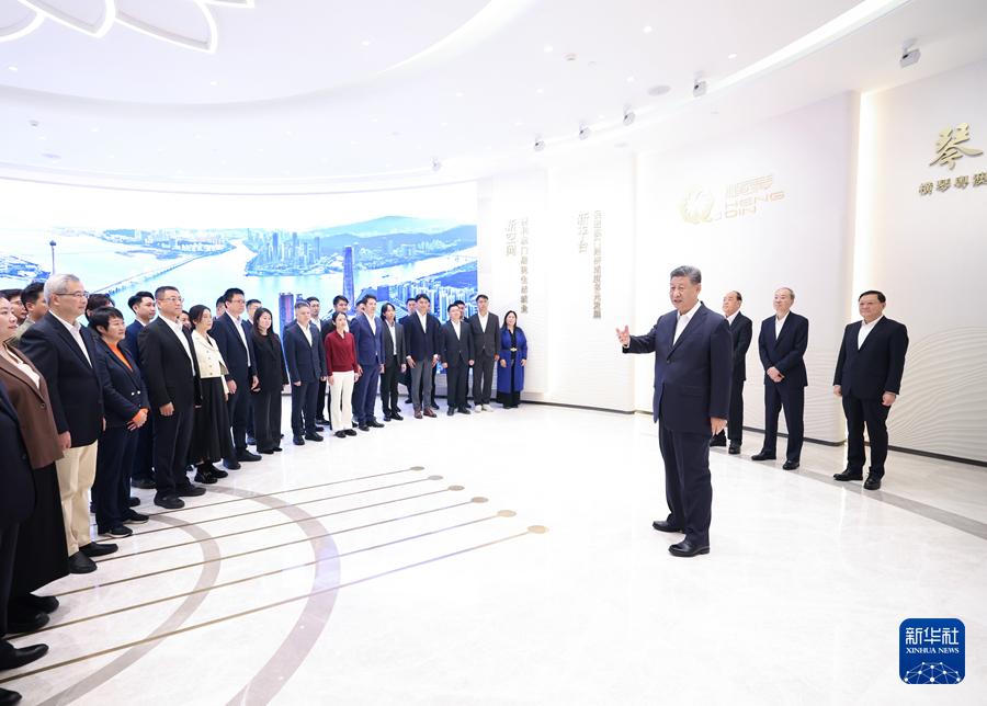 12月19日上午,中共中央總書記、國(guó)家主席、中央軍委主席習(xí)近平在澳門特別行政區(qū)行政長(zhǎng)官賀一誠(chéng)陪同下,來到橫琴粵澳深度合作區(qū)考察。這是習(xí)近平在橫琴天沐琴臺(tái)展示廳考察時(shí),同參與橫琴粵澳深度合作區(qū)規(guī)劃、建設(shè)、管理、服務(wù)等各方面代表親切交流。